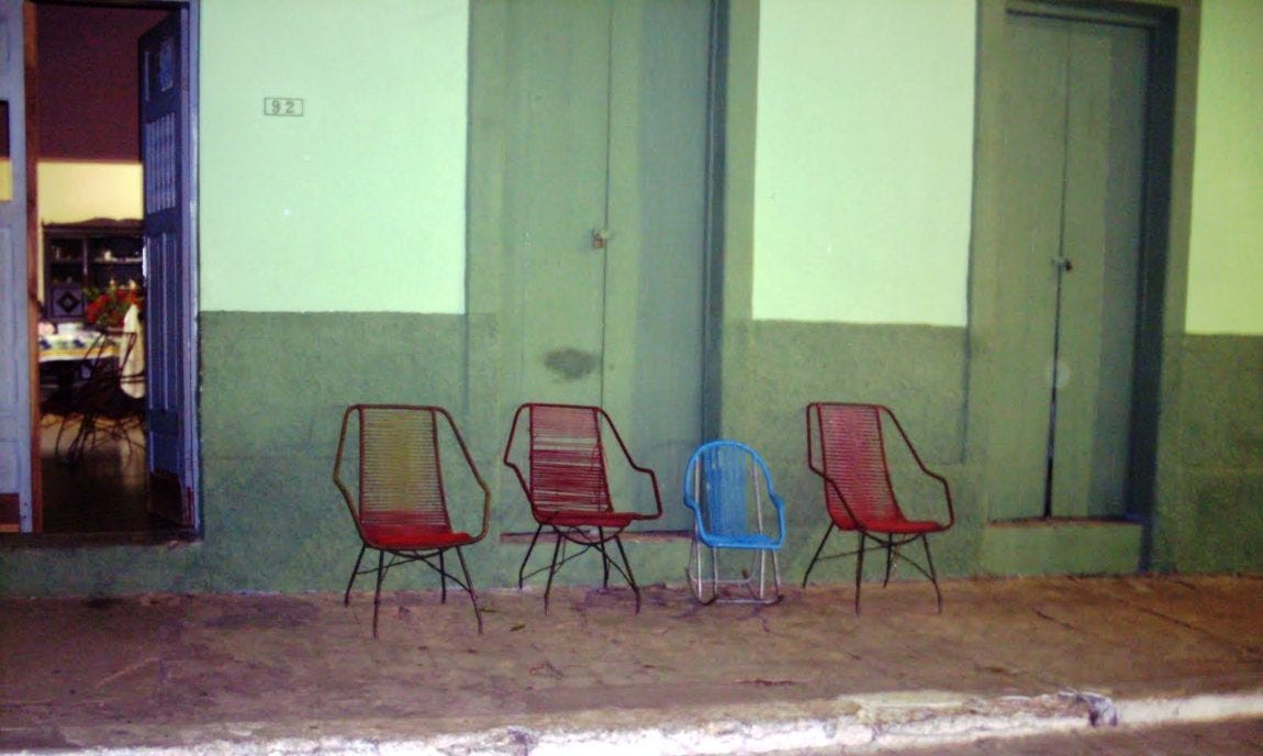 No fim da tarde, religiosamente, as cadeiras de área da casa da minha vó iam para a calçada. A vizinha que varria o quintal se juntava. O vizinho voltando do mercadinho ficava por ali. Às vezes até café alguém passava e as cadeiras só voltavam pra dentro na hora da novela das 21h. Era uma rede.